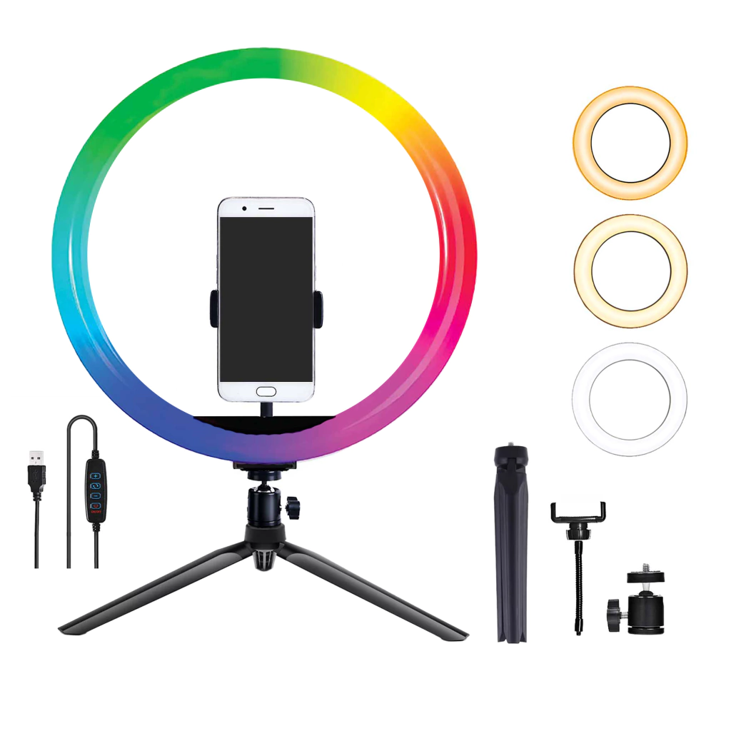 Aro De Luz Led 30 Cm Con Trípode de Mesa 19cm Ionify AuraMobile 12 RGB