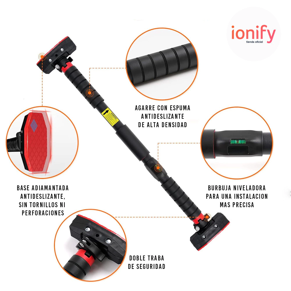 La Barra de dominadas Ionify ForceBar es el equipo ideal para quienes quieren llevar su entrenamiento en casa al siguiente nivel. Con un diseño elegante y robusto, esta barra ajustable es la herramienta perfecta para maximizar tus rutinas de fuerza y resistencia sin salir de tu hogar.