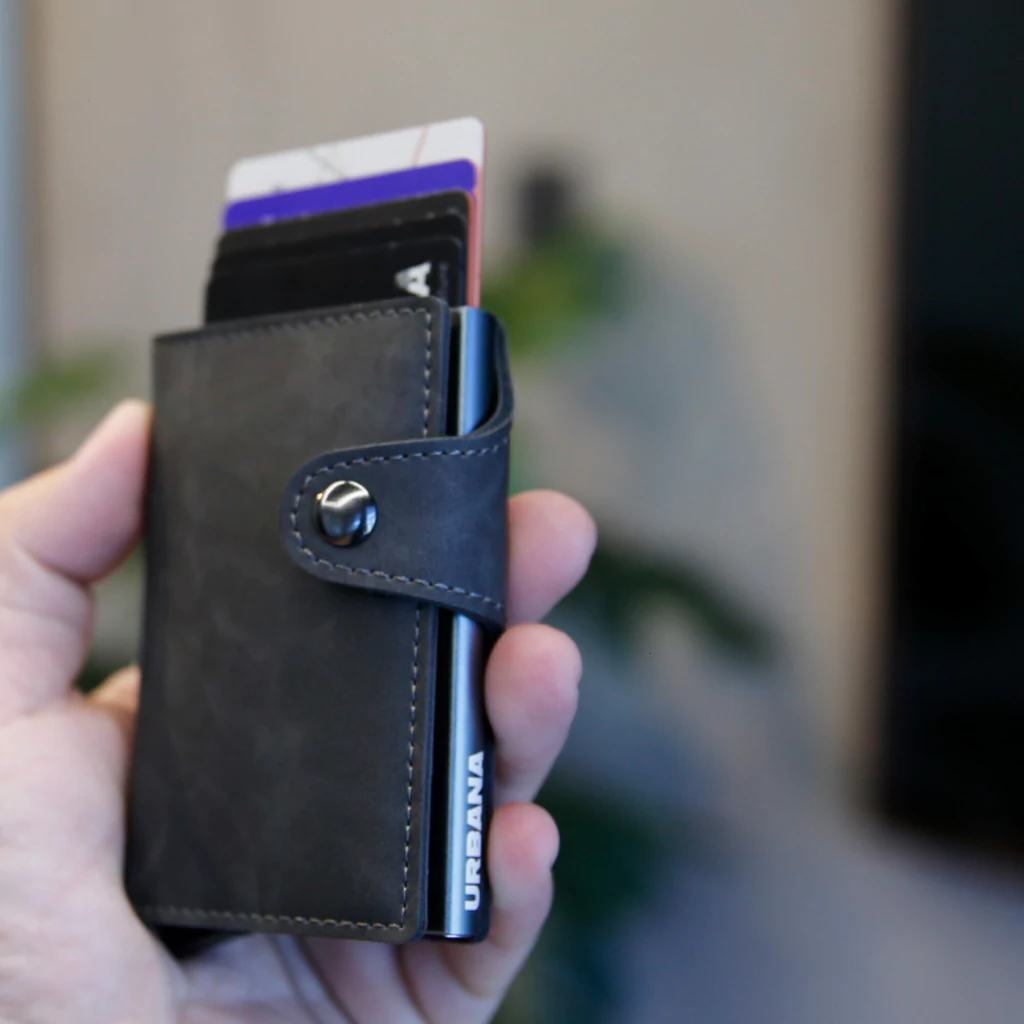 Pagá más rápido y con mayor seguridad con la nueva billetera Urbana W de Ionify. Tamaño y compartimientos optimizados para ofrecer un billetera compacta en tan solo 9,8 cm de altura -un tamaño un poco más grande que tu tarjeta de débito y más chica que tu smartphone-. Ideal para llevarla en un bolsillo frontal sin molestias. La Urbana W cuenta con un compartimiento de aluminio con capacidad de hasta cinco o seis tarjetas con bloqueo RFID para proteger sus plásticos del robo de identidad electrónico. Además cuenta con espacio suficiente para billetes y tarjetas secundarias en los bolsillos interiores.